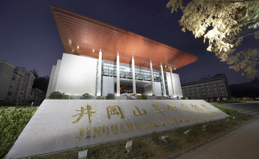 井冈山革命博物馆,在设计上,遵循现代主义简约设计风格,严谨细腻,简约而不简单,丰富而不复杂,每个细节都渗透着历史的庄严和厚重。从形式上采用“画廊式”展厅的基本展陈风格,以悠远、浓郁的井冈山革命和民族文化背景为衬托,以历史为主线,以图片和实物为载体,突显风雨历程以及取得的辉煌成就,使博物馆成为集史志展示、红色教育和会议于一体的多功能展馆。
