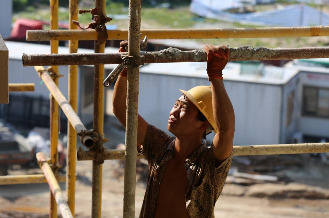 但就算在这样恶劣的天气环境下,汗流浃背的广田工人们在项目上依旧干劲十足。
