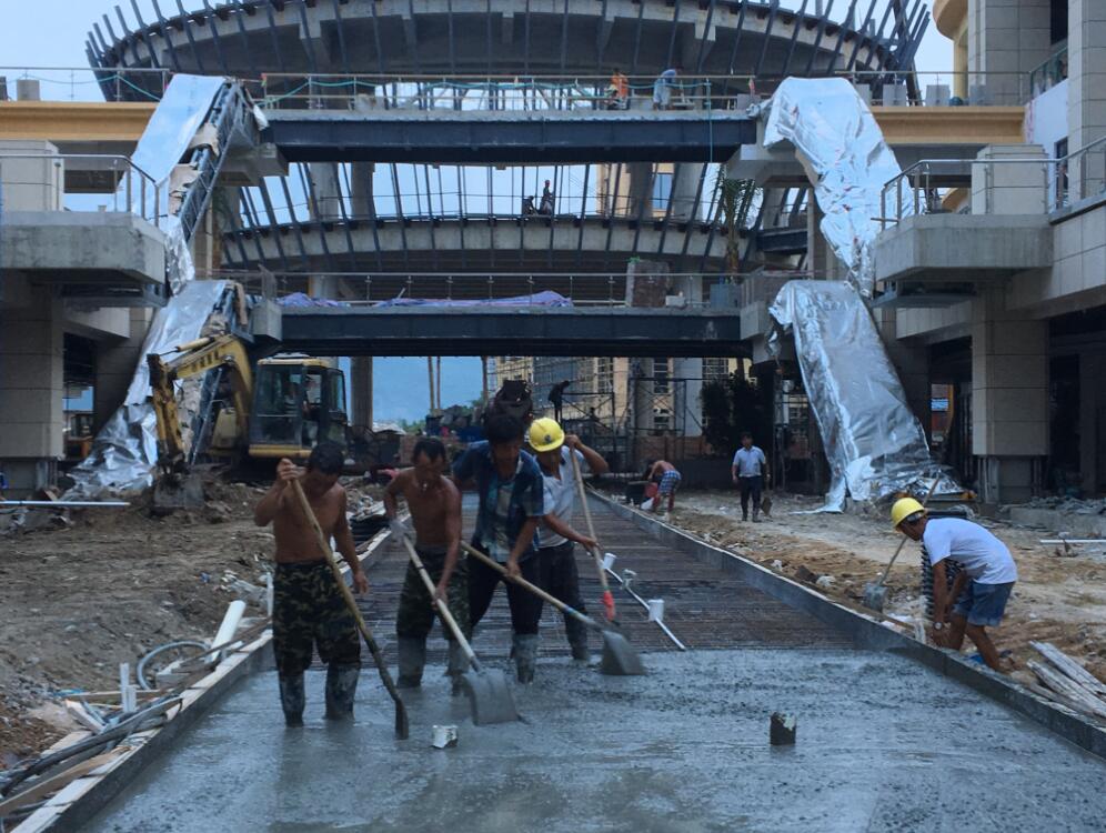 早上7点,广田工人们已经准时就位开始工作,目标就是要超额完成当天的工作任务。到上午10点半,三亚的气温迅速突破37℃,水泥地面温度接近80℃,用项目部工作人员的说法就是:“打个鸡蛋放上面就可以成为标准的荷包蛋”。不只是气温高,强烈的紫外线常常让人的眼睛眯成了一条斜线,在太阳下呆五分钟,皮肤会有明显的灼热感。