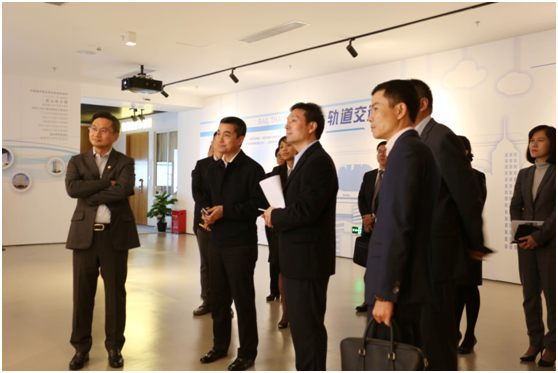 中国银行深圳分行行长宁效云(右2)一行在广田控股集团董事长叶远西(左2)及广田高管的陪同下参观广田科技智能馆