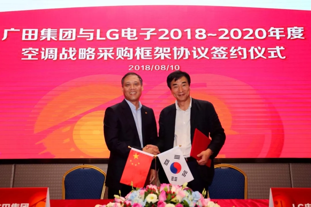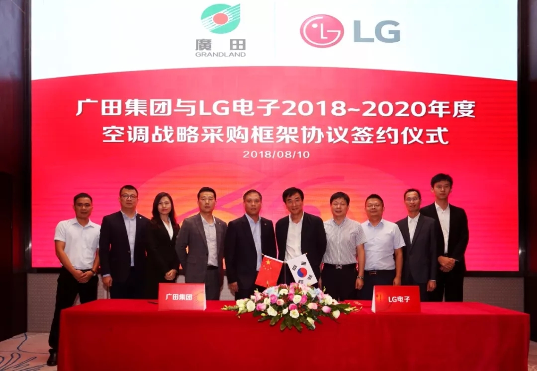8月10日上午,广田集团与LG电子2018-2020年度VRV空调战略采购框架签约仪式在广田集团总部大楼隆重举行。LG集团副社长、LG 电子中国总裁李惠雄,LG空调中国总经理梁涛,广田集团董事长范志全等领导出席了签约仪式。