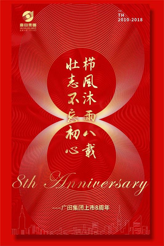 2018年,是贯彻党的十九大精神的开局之年,中国共产党建党97周年,同时也是改革开放40周年,在此重要的时间节点,广田集团迎来了上市8周年。从1993年在改革开放的洪流中应运而生,到2010年摇身一变成为资本市场黑马,再到2018年在复兴中国梦的伟大征程中砥砺前行,广田集团满怀壮志,不忘初心。