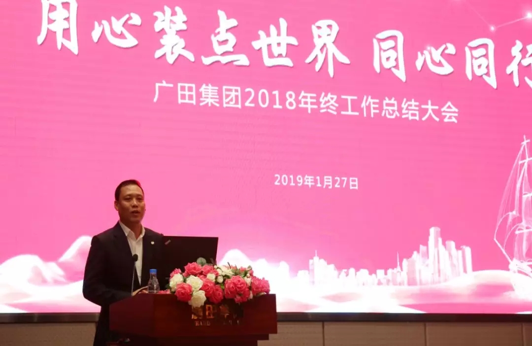“明宗旨、通上下、联群情、陈利弊、定规则、追逋负”,此次大会既是一次总结表彰大会,更是广田集团谋局新篇的动员大会,通过本次会议,公司上下对当前的市场形势更加清晰,对2019年工作重点达成普遍共识,对未来发展方向和公司战略目标更加坚定。2019年,面对更加复杂的经济环境,全体广田人将坚定秉持“用心装点世界”的企业初心,匠心坚守,同心同行,谋员工幸福,谋股东回报,谋客户发展,谋社会担当,全面推动广田事业迈上新的台阶,在新时代的宏伟画卷上,再谱华章,再续辉煌!