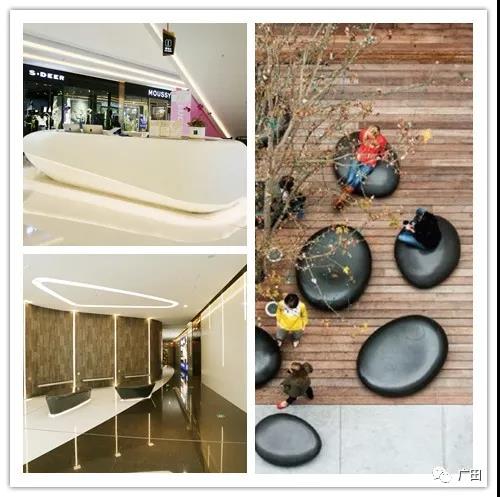 鹅卵石造型的客户服务台、休息厅座椅,为商业环境增添一份大自然的舒适和随意,亲切、温和的色彩,圆润的造型,与海、与茶相映成趣。