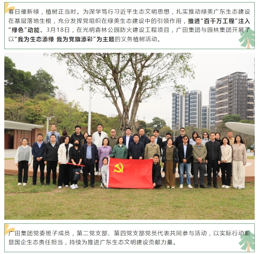 我为生态添绿 我为党旗添彩——广田集团与园林集团开展党建共建植树活动