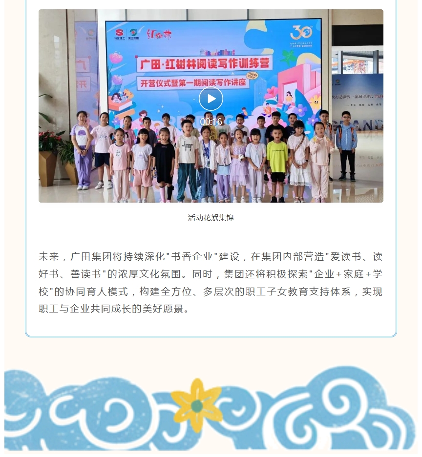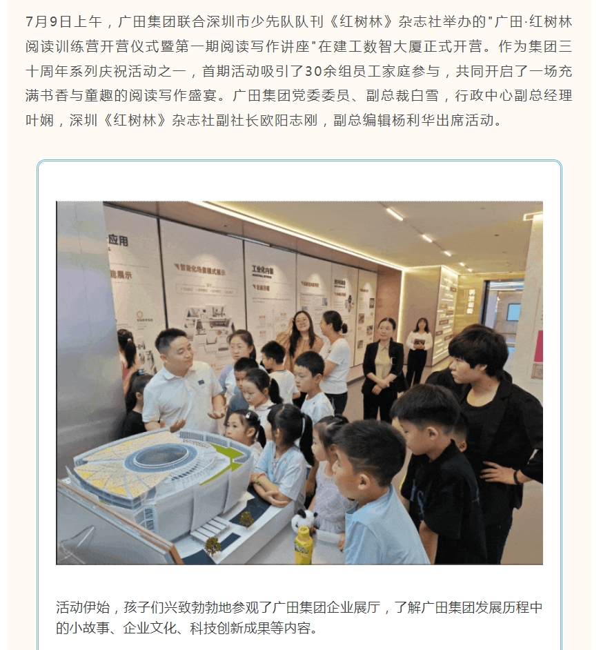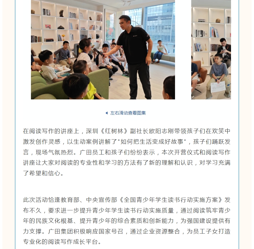 三十正青春 奋进向未来 | 暑期关爱,品味书香 广田集团开展阅读写作营 丰富职工子女暑期生活