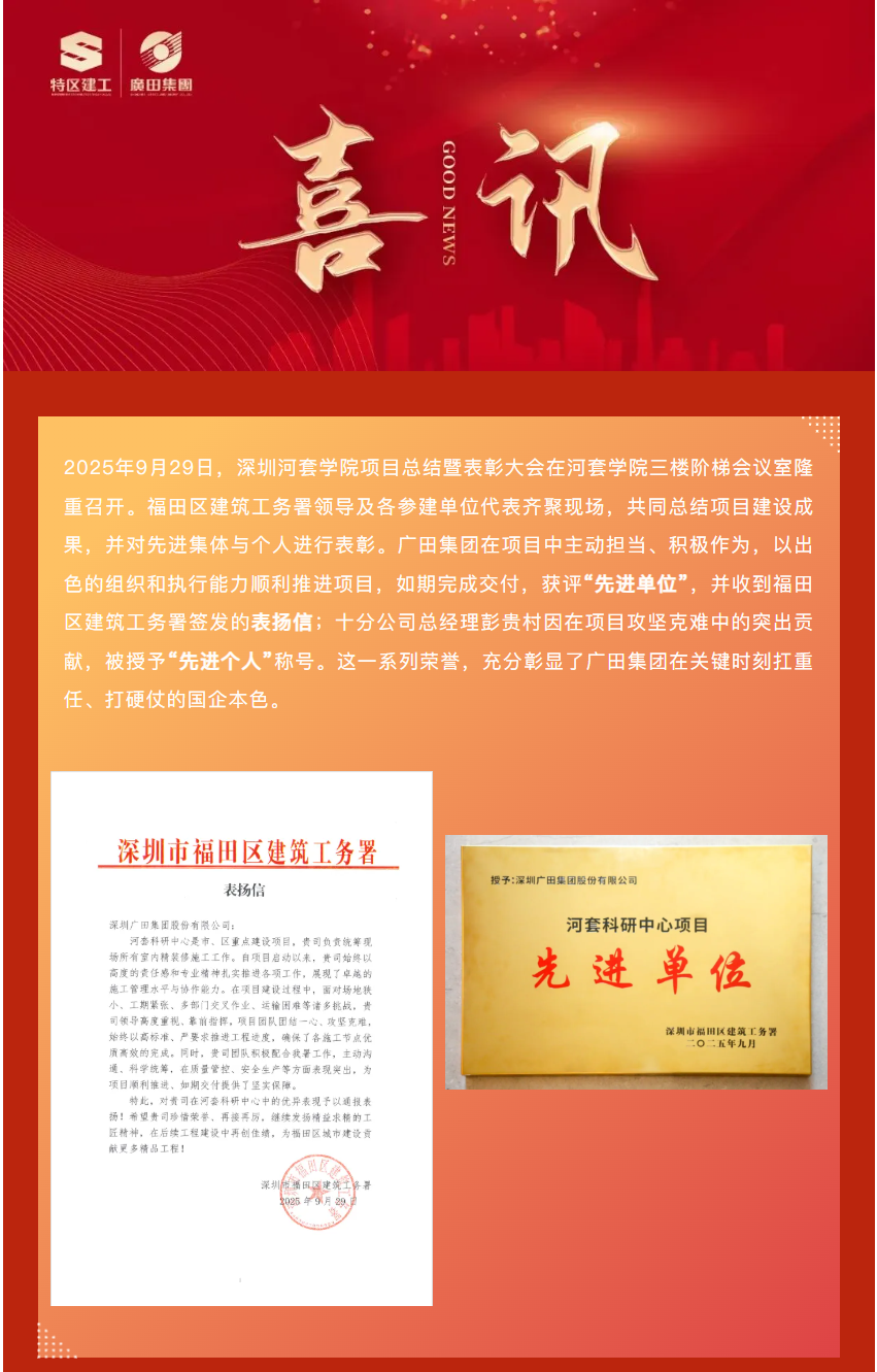攻坚克难显担当 精工品质赢赞誉——广田集团获福田区建筑工务署高度肯定
