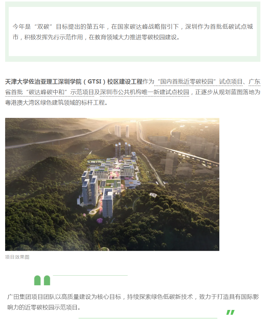 绿色实践 “碳”路先锋——广田集团加快建设天津大学佐治亚理工深圳学院项目近零碳校园示范标杆