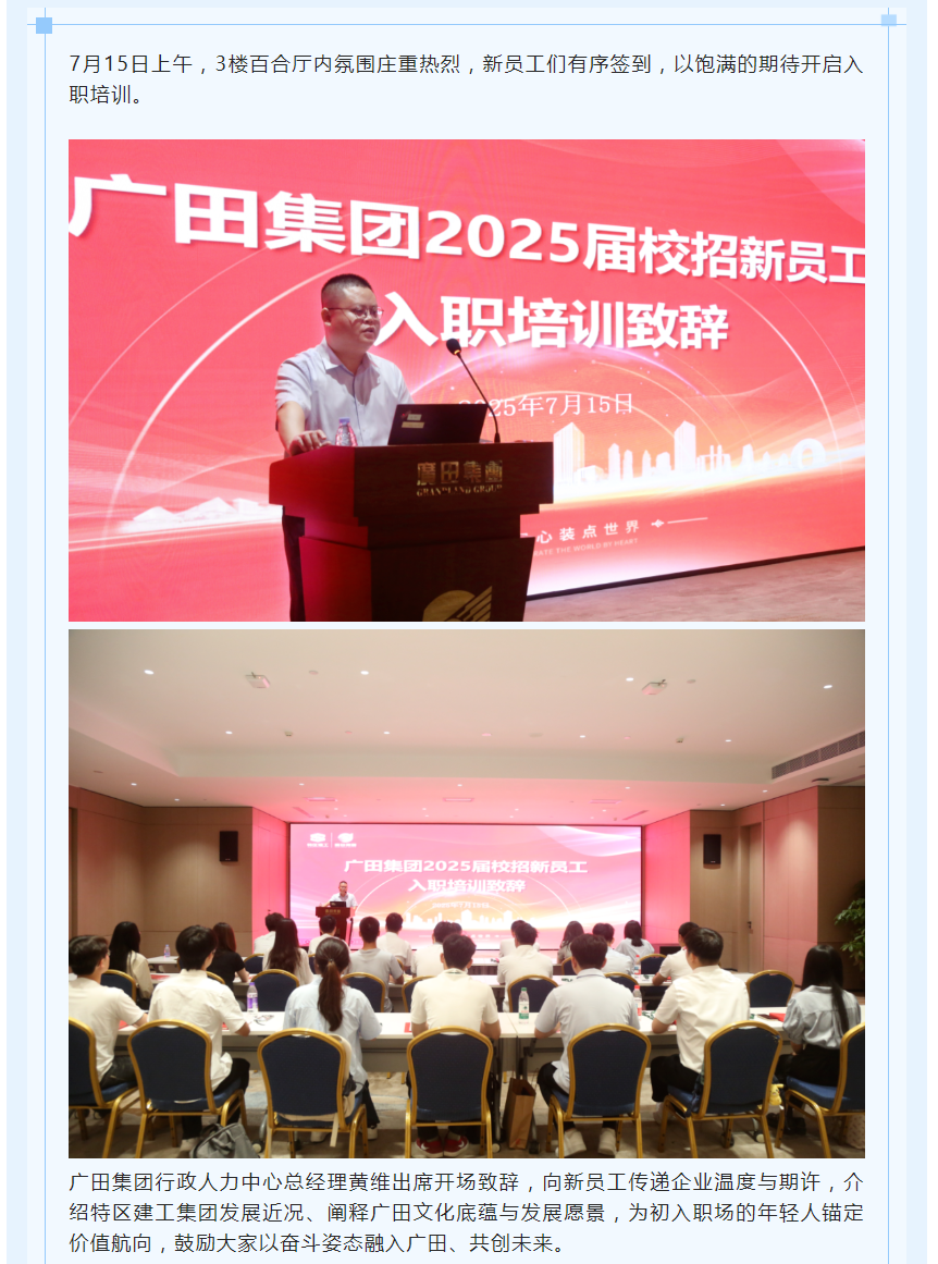 青春匠星逐光行 筑梦广田启新程——广田集团2025届校招新员工入职培训赋能建筑新生代