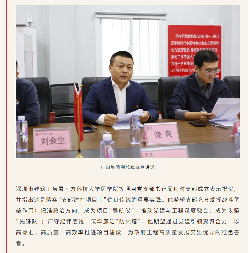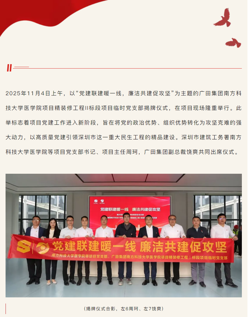 广田集团南科大医学院项目精装修工程二标段项目临时党支部揭牌仪式圆满举行