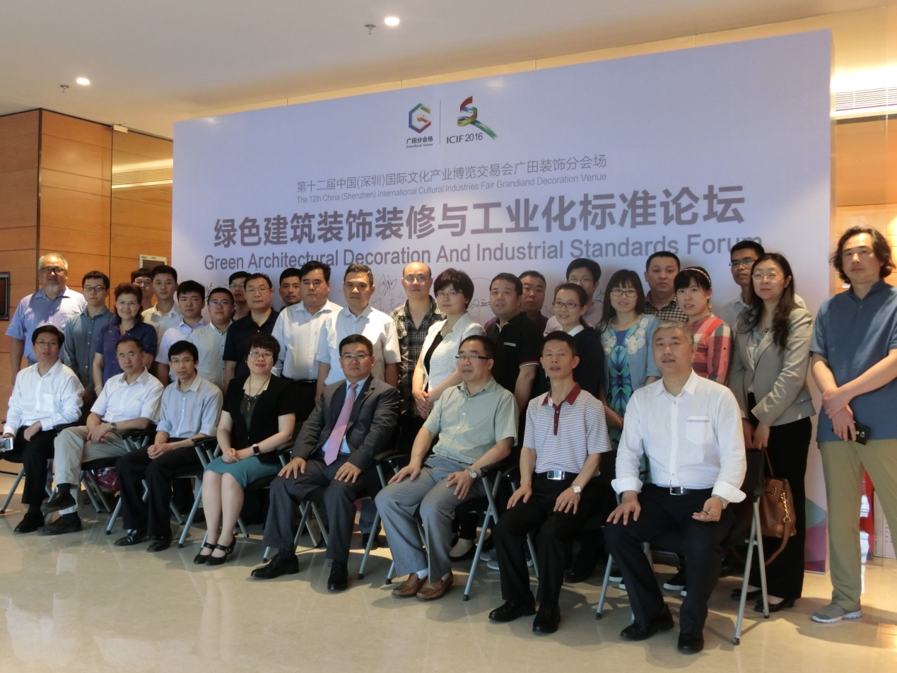 5月14日,文博会广田分会场权威峰会精彩继续,“绿色建筑装饰装修与工业化标准论坛”邀请了中国建筑材料联合会结构调整与发展部周丽玮副部长、住建部绿色建筑发展处李宏军博士、住建部建筑节能专家委员会委员、深圳建科院总工任俊博士、以及中国建材科学研究总院、绿色建筑材料国家重点实验室负责人冀志江博士等50多位国家标准、行业标准的编委专家们齐聚一堂,就绿色建筑、绿色装饰、绿色建材的相关政策和标准化工作展开深度探讨,广田集团总裁晏绪飞出席会议,与众多行业专家们深入交流,联合把脉绿色建筑装饰装修发展趋势。