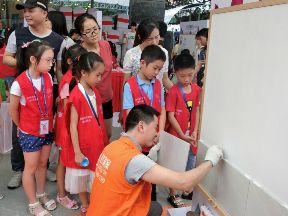 现场我们看到一个超过150人的包括家长、学生、小记者等一起参与进来的“小小建筑师”团体。他们热情洋溢的体验着装饰装修乐趣,勾画城市生活未来。在充满趣味的游戏中,小小建造师们伴随着欢声笑语,乐此不疲地进行操作与探究,用独特的方式表达着自己对周围世界的认识。