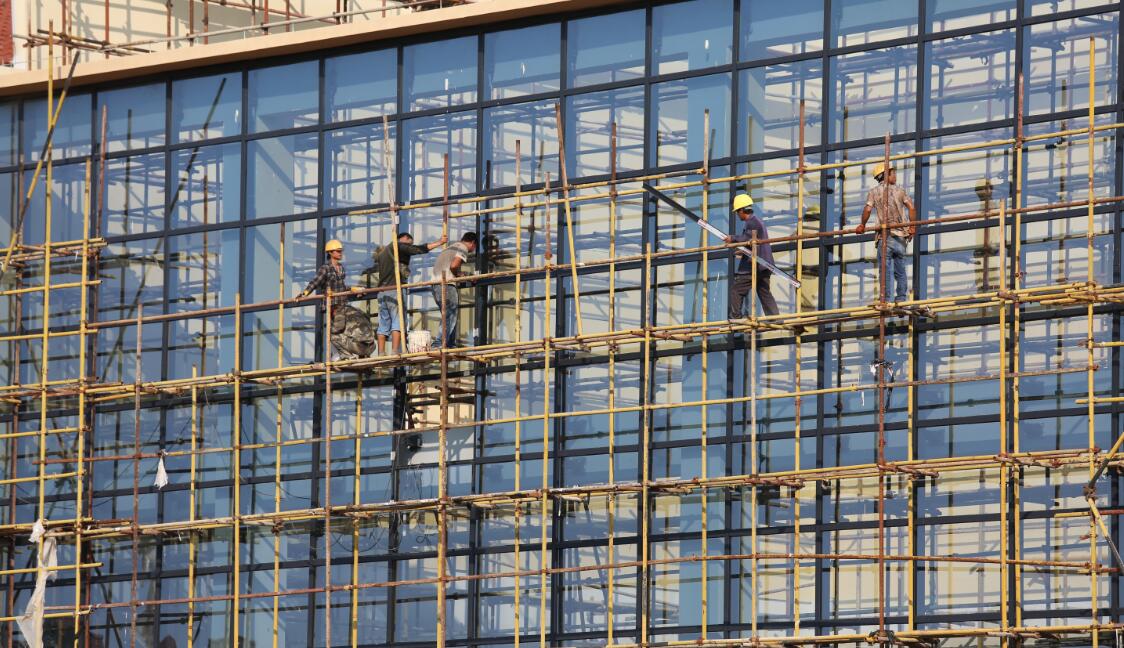 但就算在这样恶劣的天气环境下,汗流浃背的广田工人们在项目上依旧干劲十足。