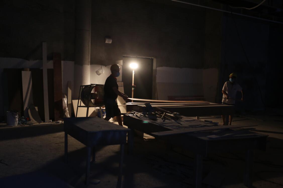 到下午4点,一场暴雨突袭,露天施工人员必须转到走廊或者屋内,即便如此,广田工人们却丝毫不受影响,依旧在指定的区域内战斗到晚上10点半。