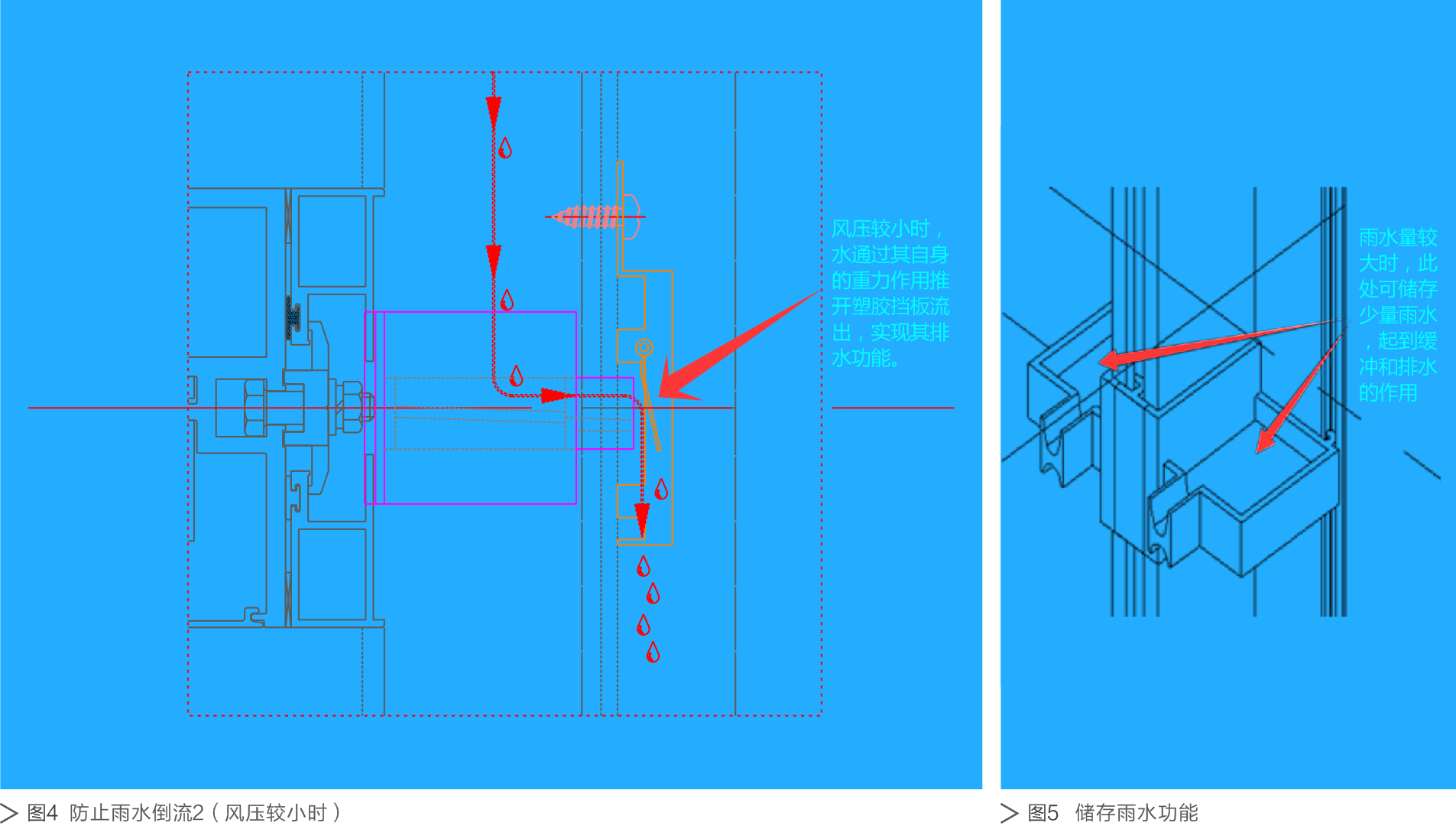 这种方法虽然在一定程度上能够缓解幕墙漏水问题,但是却又存在储水量固定、腐蚀以及进一步渗漏的问题,在国内这种方法应用较少。