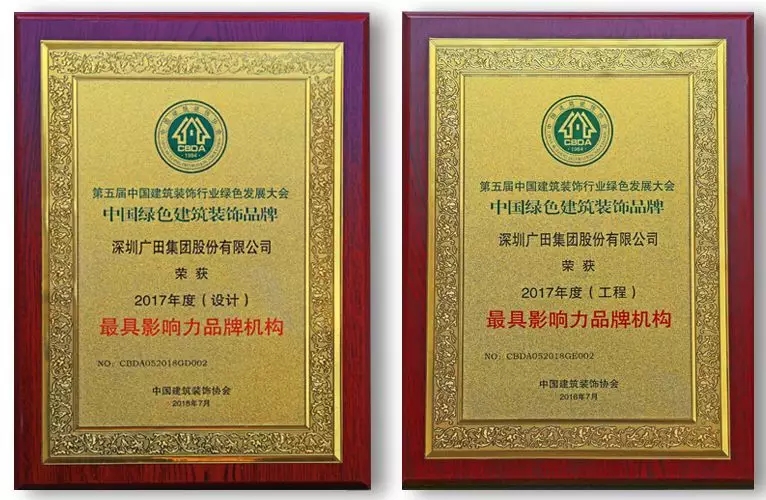 广田集团凭借在推动绿色装饰发展过程中取得的优异成绩,荣获首届中国绿色建筑装饰品牌“最具影响力品牌机构”大奖。