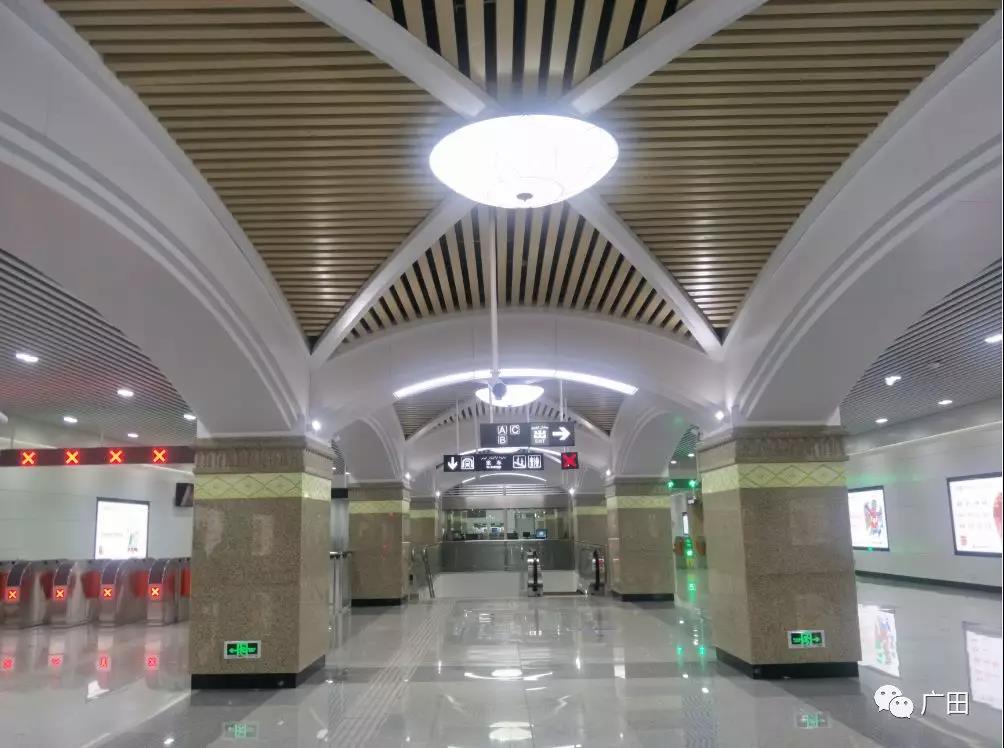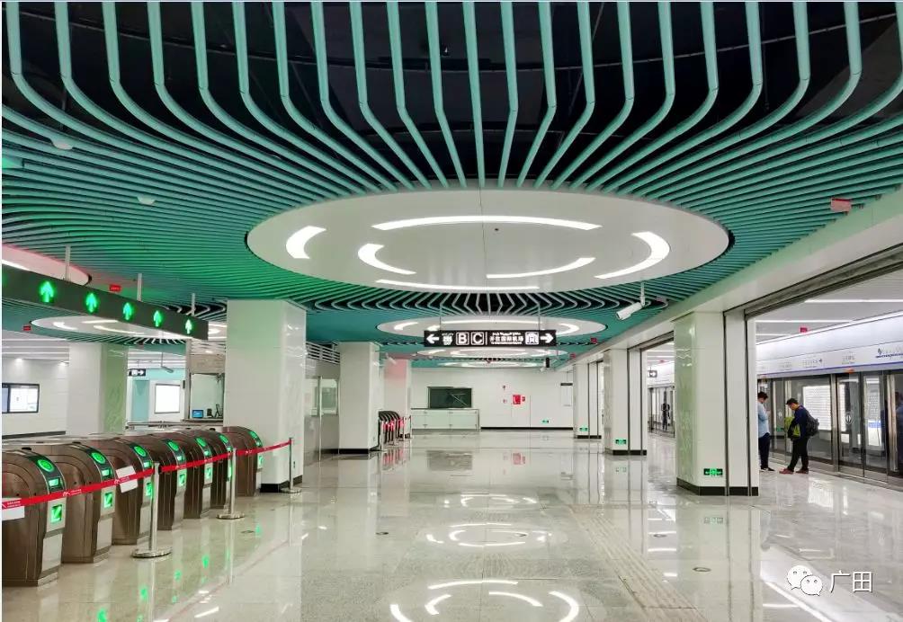标准站一线一景,强调标准统一。标准站采用墙天一体化设计,吊顶个性区域采用半裸装设计,结构顶面喷黑,吊顶采用深色方通增加空间景深感。在整体统一的设计模式下,各个车站加以变化,利用局部的设计变化与整体空间主题色的变化区分各个车站,造型设计简洁,注重功能。重点站一站一景,彰显其特色。结合全线文化特征及周边区域的文化属性,运用较丰富的表现形式处理空间的整体效果,侧重文化艺术表现与个性化设计,体现城市特征与风貌。