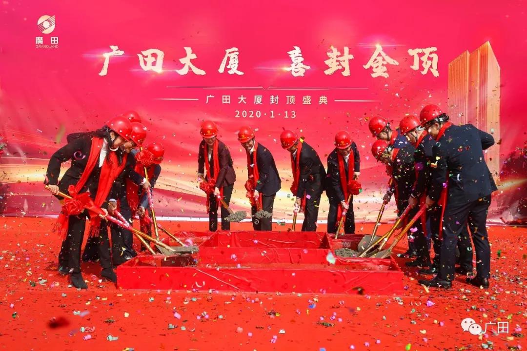 2020年1月13日,广田总部大厦主体结构封顶仪式隆重举行。深圳市装饰行业协会会长高刚,广田创始人、广田控股集团董事长叶远西,广田集团董事长范志全、总裁叶嘉铭,广田置业董事长宋梓琪及广田高管团队出席封顶仪式。