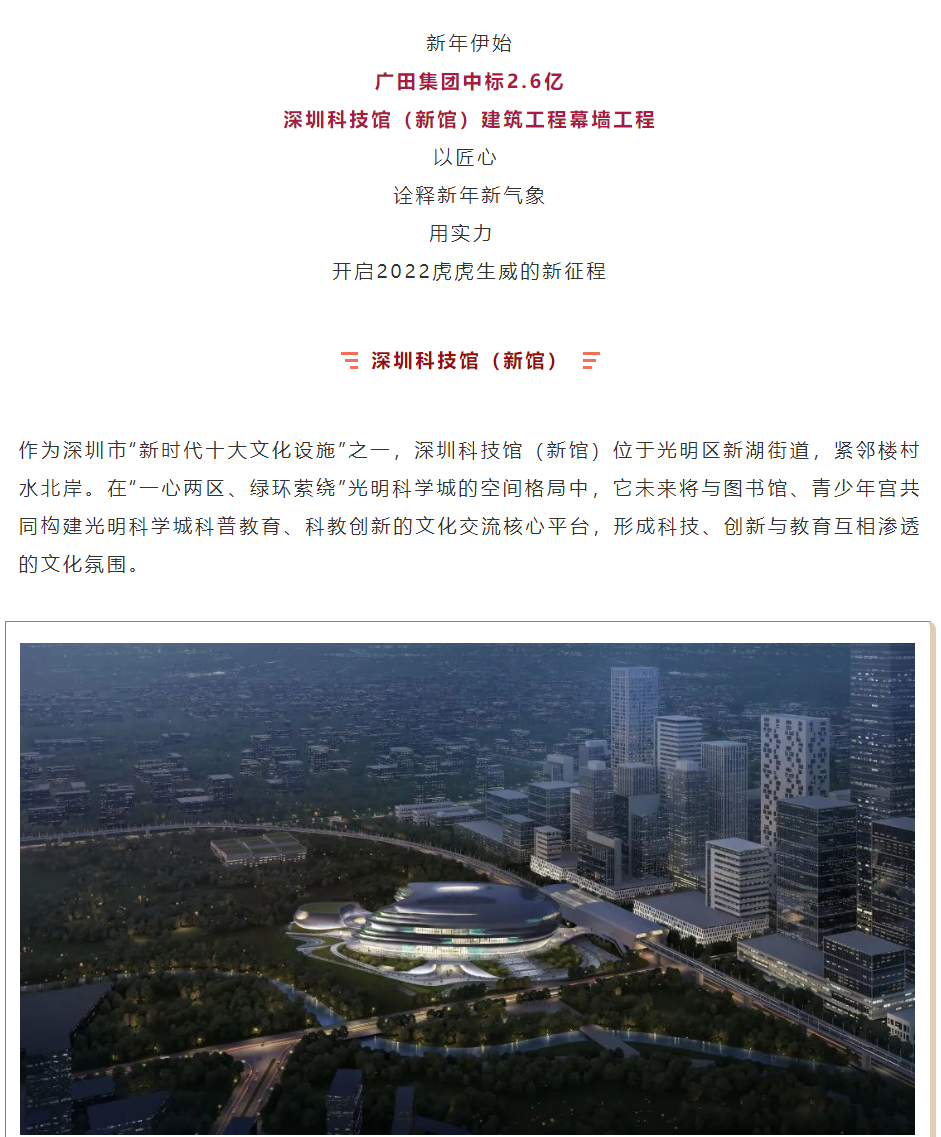 2.6亿中标深圳科技馆(新馆)幕墙工程,广田集团新年第一标旺气冲天