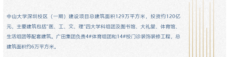 大型公建 写字楼 住宅精装修 轨道交通 学校/医院 幕墙 园林景观 商业综合体 星级酒店 广田文旅