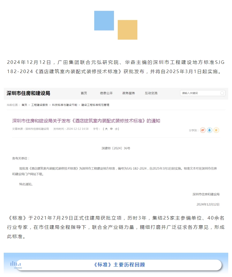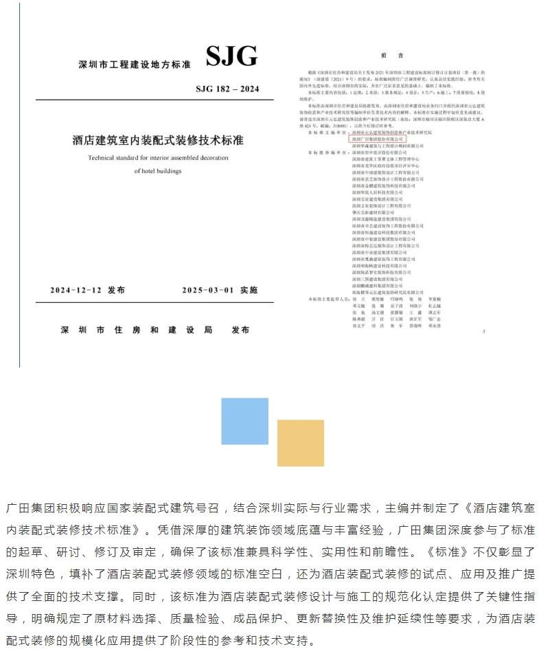 匠心筑梦,标准引领未来丨广田集团主编深圳地方标准SJG 182-2024《酒店建筑室内装配式装修技术标准》获批发布