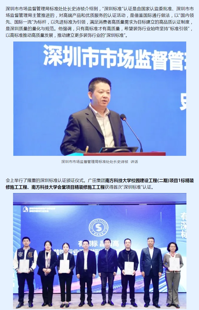 深圳广田集团股份有限公司,简称“广田集团”(股票代码:002482),是特区建工集团旗下一家大型综合性上市公司。公司成立于1995年,是一家具备建筑装饰装修、幕墙、智能化、机电安装、消防等专业工程设计施工一体化能力的国际绿色建造综合集成服务商,拥有建筑装修装饰工程专业承包壹级等十余项壹级、甲级资质,业态涵盖住宅、写字楼、大型公建(大型场馆、学校医院、轨道交通等)、星级酒店、商业综合体及文旅等,连续多年位列中国建筑装饰百强企业第二,是“深圳市知名品牌”、“广东省著名商标”、“中国驰名商标”。