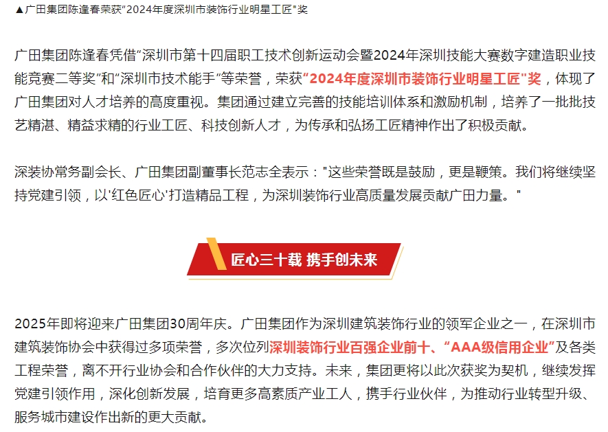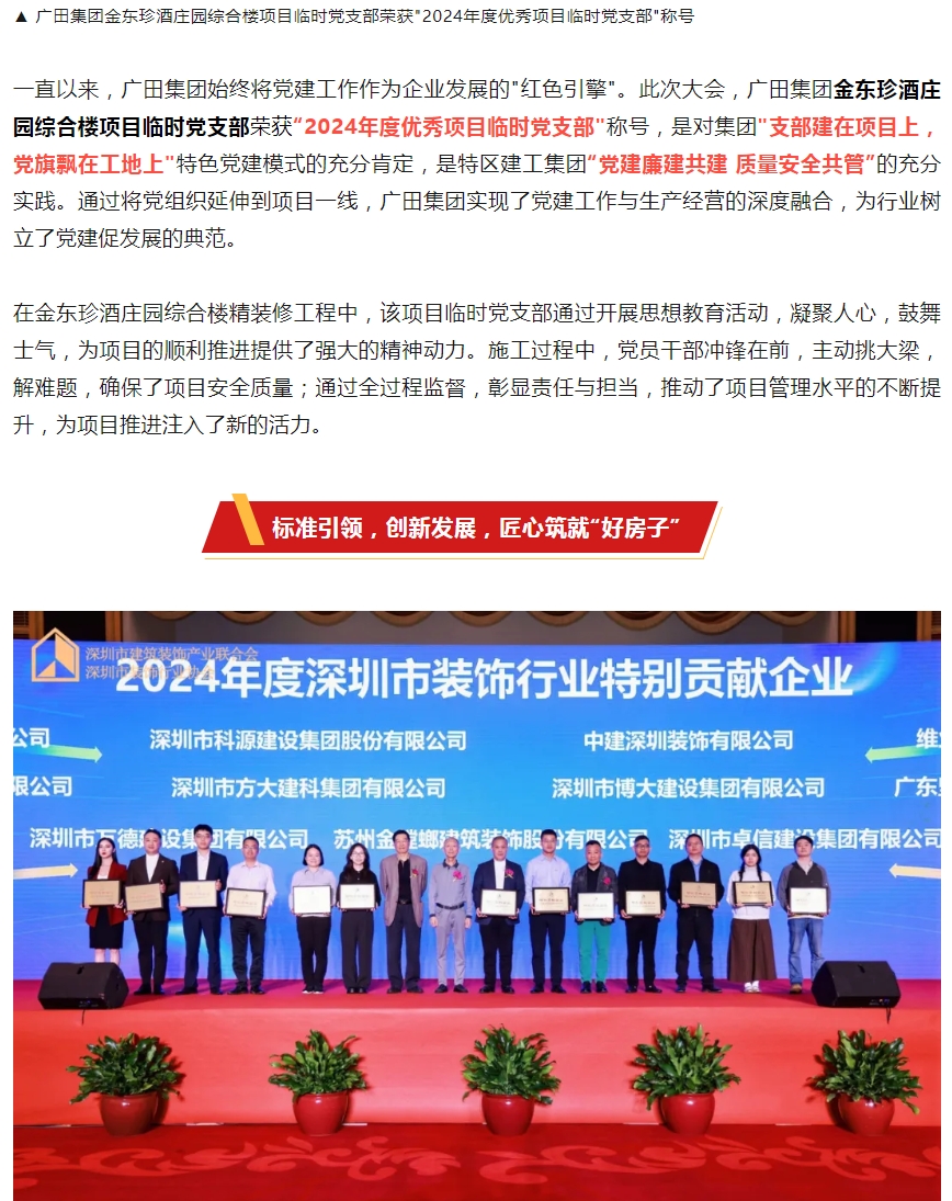 党建引领促发展 匠心筑梦谱新篇——广田集团在深圳装饰行业盛会上揽获三项殊荣