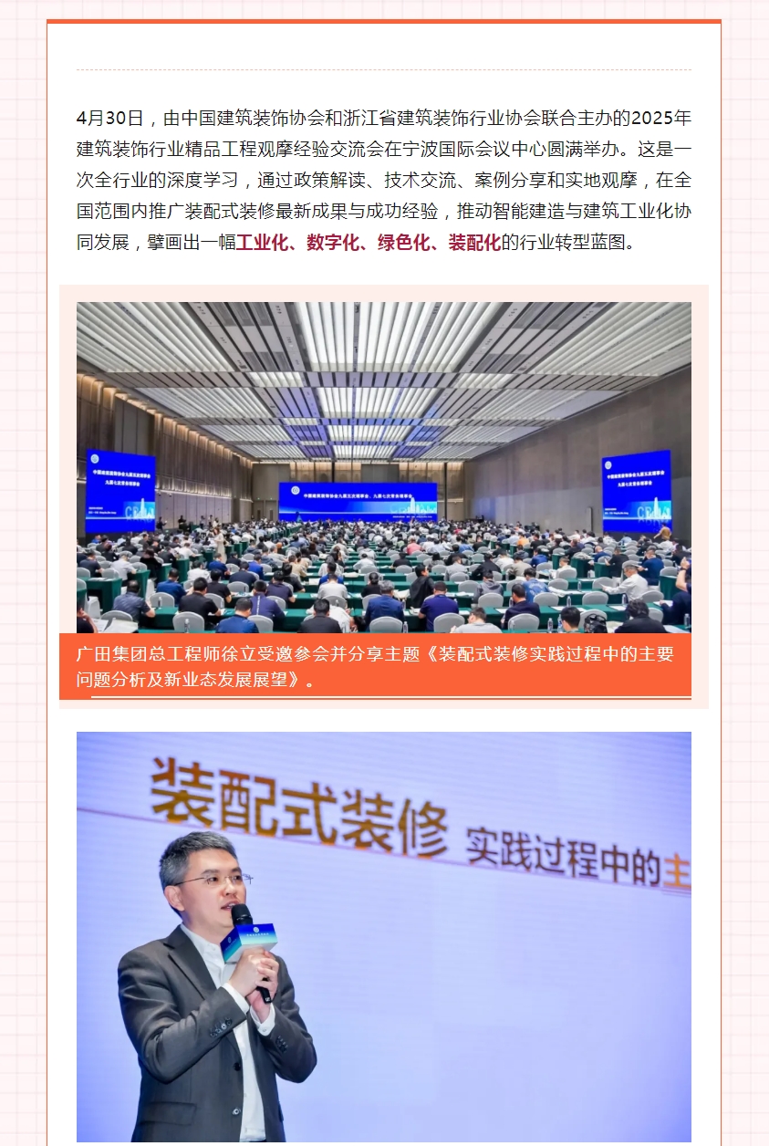 工业集成 四化驱动 行业高质量发展论坛交流丨广田集团总工程师徐立受邀参加2025年建筑装饰行业精品工程观摩经验交流会
