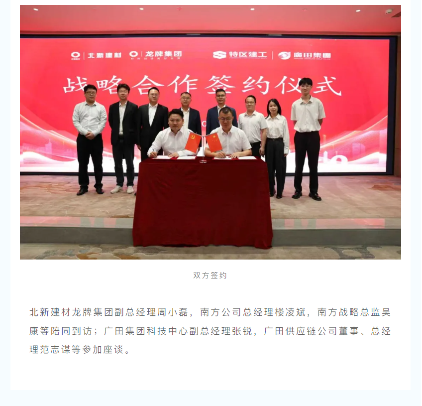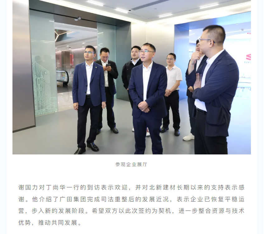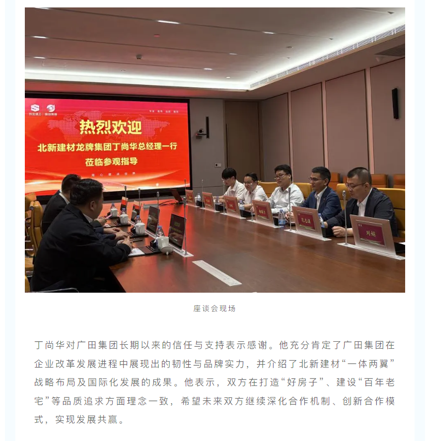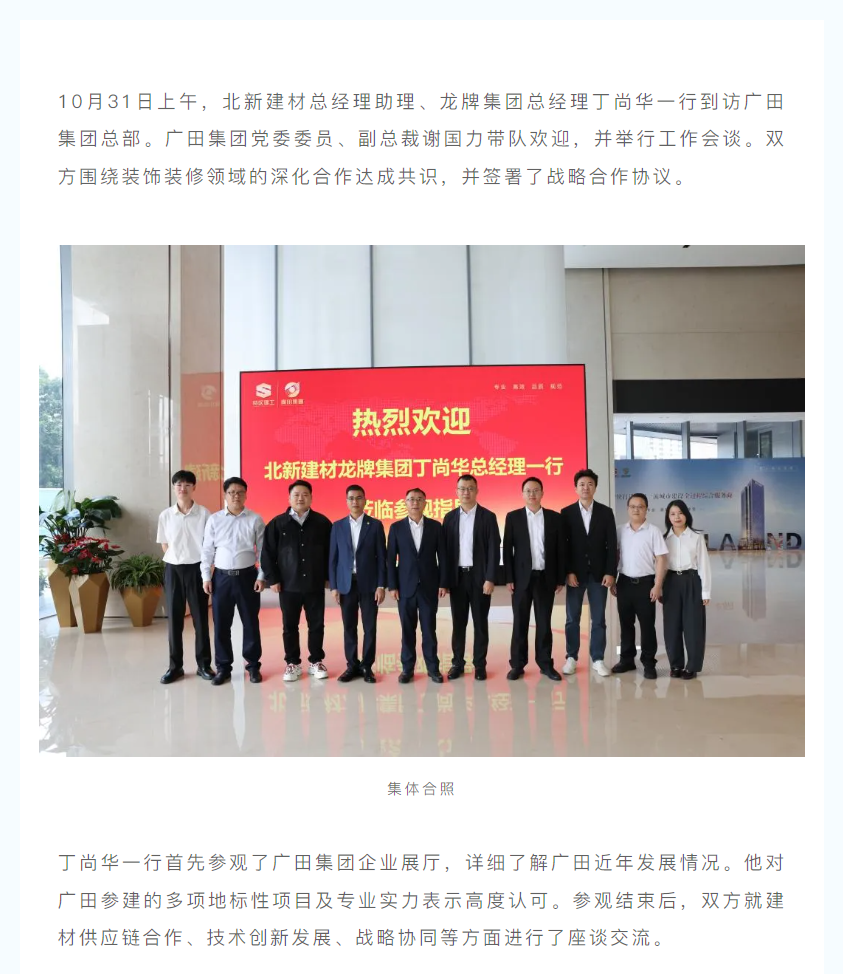北新建材龙牌集团总经理丁尚华一行到访广田并签订战略合作协议