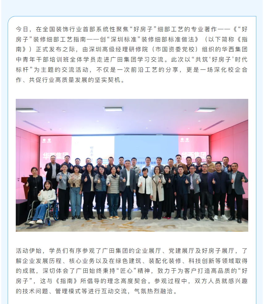 深圳广田集团股份有限公司,简称“广田集团”(股票代码:002482),是特区建工集团旗下一家大型综合性上市公司。公司成立于1995年,是一家具备建筑装饰装修、幕墙、智能化、机电安装、消防等专业工程设计施工一体化能力的国际绿色建造综合集成服务商,拥有建筑装修装饰工程专业承包壹级等十余项壹级、甲级资质,业态涵盖住宅、写字楼、大型公建(大型场馆、学校医院、轨道交通等)、星级酒店、商业综合体及文旅等,连续多年位列中国建筑装饰百强企业第二,是“深圳市知名品牌”、“广东省著名商标”、“中国驰名商标”。