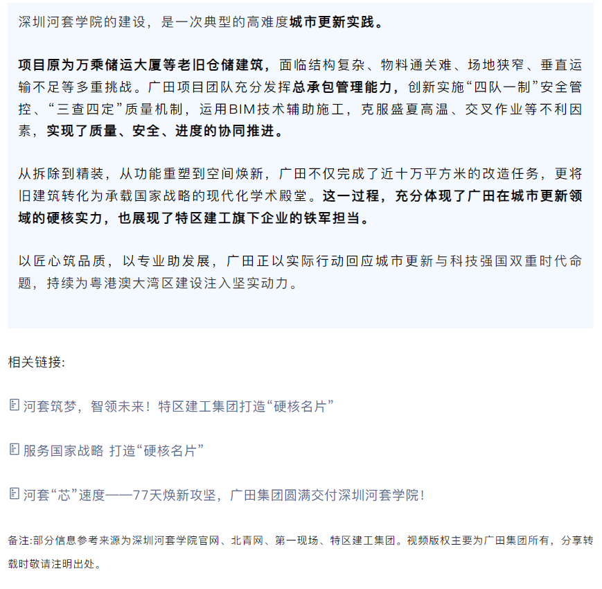 深圳广田集团股份有限公司,简称“广田集团”(股票代码:002482),是特区建工集团旗下一家大型综合性上市公司。公司成立于1995年,是一家具备建筑装饰装修、幕墙、智能化、机电安装、消防等专业工程设计施工一体化能力的国际绿色建造综合集成服务商,拥有建筑装修装饰工程专业承包壹级等十余项壹级、甲级资质,业态涵盖住宅、写字楼、大型公建(大型场馆、学校医院、轨道交通等)、星级酒店、商业综合体及文旅等,连续多年位列中国建筑装饰百强企业第二,是“深圳市知名品牌”、“广东省著名商标”、“中国驰名商标”。