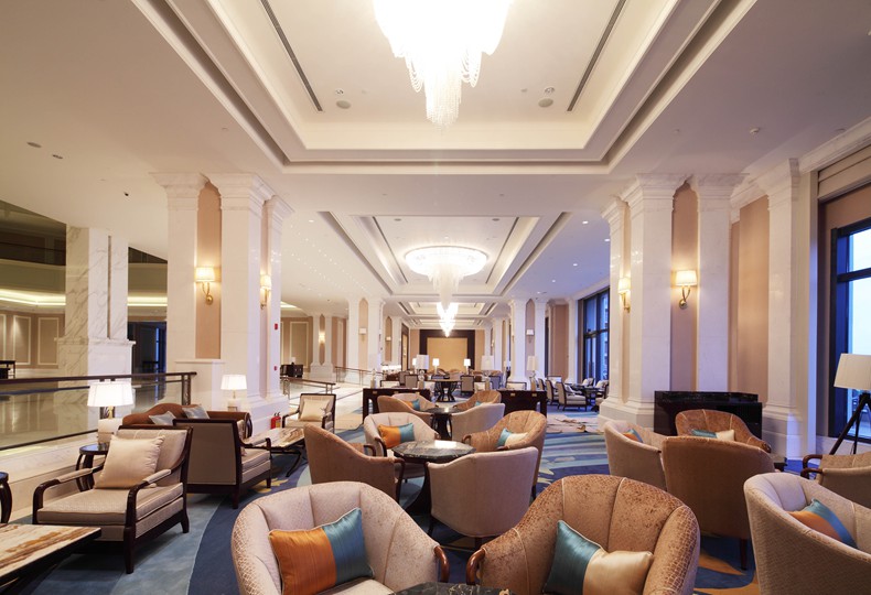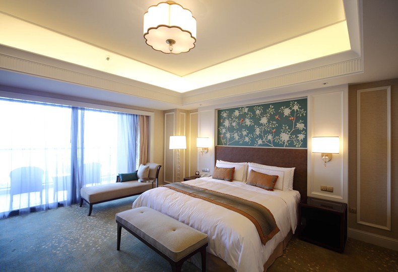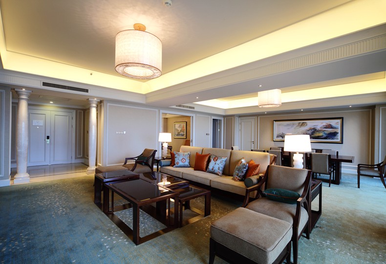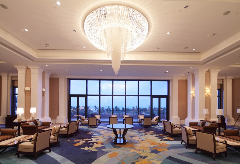 项目位于海南省海口市,建筑面积6000 ㎡。 是白金五星级酒店,也是海南省最高标准的政务级酒店。古朴的建筑屹立于椰林之中,面朝蔚蓝大海。建筑的古典气息与大自然浑然一体.室内设计结合新古典主义的设计手法并将大自然的元素融入其中,追求尊贵、典雅,体现低调奢华装饰的效果。